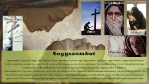 Nagyszombaton az egyház Krisztus szenvedéséről és haláláról elmélkedik a szentsír előtt időzve. Ekkor Krisztus a sírban fekszik, a világ elcsendesedett, a szavak elnémultak, a harangok nem szólnak, az apostolok, a tanítványok, az asszonyok mind-mind a szavakat keresik, a folytatást várják.